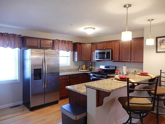 Five year young Townhouse with three levels of living in excellent condition! This 2+ bedroom is an end unit which allows for terrific sunlight. The main level of living offers a stainless steel applianced kitchen, granite counters, ample wood cabinets and utility closet. Half bathroom. Over sized living room/ dining room combo, closet and exterior access.This open level has hardwood floors throughout. Head up stairs to master bedroom with double closets and wall to wall carpeting. Second bedroom also has wall to wall carpeting. Full bathroom with tile floor, stack-able washer and dryer. Bonus loft on living level three! This area is well suited for many various needs. Heating is forced hot air by gas, central air conditioning and Rinnai hot water heater. Garage door with electric eye and extra storage space in entry level. Convenient to 495 and Lowell connector.