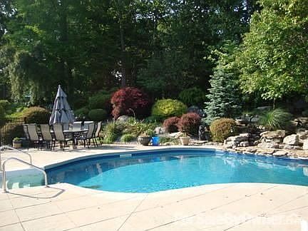 Must see to appreciate the details! 3+ acre property not be believed w/extensive landscaping, waterfall, i/g pool. Completely updated home w/ designer painting thru out, kitchen w/granite counters, top of the line appliances incl. sub-zero fridge, porcelain flrs; fam rm w/Brazilian cherry flrs & wood burning FP, beautifully finished bsmt w/granite topped bar, slate flrs. No detail overlooked ~ molding throughout. Perfect location for commuting in a desireable development complete the package.
