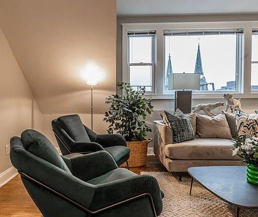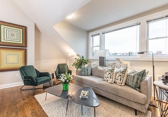 In unit laundry, central air, newer bathroom, private roof deck. Sun drenched penthouse with 2 skylights and highly coveted private roof deck featuring 360 degree views on a tree lined street in the captivating neighborhood of the South End. The loft like space boast impressive 13.5 foot vaulted ceilings, open living room, downtown skyline views, espresso stained hardwood floors, white shaker cabinets & marble kitchen. Modern bathroom, lofted home office area, and 2 bedrooms in a desirable brick building. A+ Location with a Walkscore of 95! Close to all shops, restaurants, coffee houses, parks & public transit. East, North & West exposures on this end building flood the home with natural light, and frame stunning sunsets through a huge picture window in the open living/dining/kitchen space. A sense of volume, and airiness seldom experienced at this price point in a traditional row house in Boston. 12 months minimum, first month, last month, and one month security deposit is required.