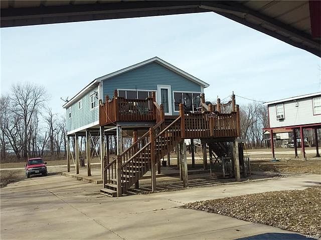 This beautiful home is set up for year round living and is fully furnished (except Dining Room table) Tucked away in a slough away from the rough waves of the Mississippi. Just a short boat ride to the Main Channel. Covered Boat Dock with lift, it's 18 X 28. Concrete surrounds this home It also comes with a covered parking area and Tiki Bar, to entertain. An elevator with a lift load of 3000 lbs, 4x8, large enough to hoist any appliances. 4 extra lots, the river front lot is leased from Lincoln County and can be assumed with proper credentials. Access to the Main Channel from two directions. This home appointed with an entrance full of windows and a gas fireplace. Large kitchen for to entertain. Two bedrooms for the extra company, and a large spacious bathroom. All insulated vinyl windows, newer roof and HVAC, and newer enormous deck. You must see this property to appreciate its beauty, convenience, and just plain fun on the Mississippi River.
