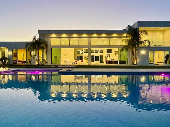 Atop what feels like a private hillside, rests this brilliantly designed modern escape. Awe-inspiring views, state-of-the-art kitchen, complete with an oversized Caesarstone center island, custom designed cabinets, Miele cooktop, oven, microwave/speed oven and 3 warming drawers, Thermador fridge and freezer and built-in espresso maker. The formal dining room is sure to 'wow' any guest with a full wall glass framed wine storage. Warmed by an oversized fireplace, pamper in the 5-star bath quarters with ultra posh soaking tub, custom stone accent walls, sitting area, walk in closet and automatic shades. Theater quality home entertainment room fully equipped with projector, AV set up and is acoustically treated. Property highlights include; Ultra high ceilings and energy efficient windows/glass doors, A true Smart Home wired for Wink and Nest system. Wind down from the hustle and bustle of a busy workday as you enjoy both the grounds and the sunsets from its east/west orientation.