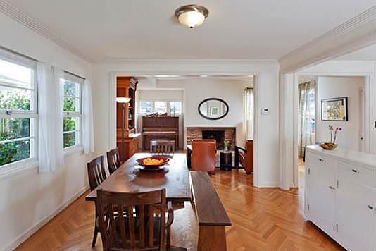 Set on a horse-shoe street comprised of friendly neighbors and 28 well-cared for homes in Redwood Heights, 80 Selkirk boasts a wide stone-clad chimney and overhanging roof lines of the Prairie Style, a uniquely American form popularized by Frank Lloyd Wright. The curved banister along the front stairs is reminiscent of the Moderne style, a lighter and later successor to the geometric angularity of the Art Deco movement reflected in the front door. A light and airy living room and dining studded with gorgeous wood awning windows are ideal for entertaining and relaxing. The broad stone fireplace, the sleek curvature of the buffet, the original light fixtures in the bedrooms, the handcrafted herringbone floor and a surprisingly effusive burst of Art Deco in the geometry of the jade toned tiles in the bathroom all add character and depth to this architecturally significant property. The downstairs renovated movie theater adds an additional 555 square feet! Found and captured and then lovin
