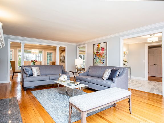SPECTACULAR, extensively renovated brick cape showcases immaculate condition reflecting high end finishes & exquisite style. Front entry welcomes w/views of 1st floor- all freshly painted in neutral palette for great flow, wide openings, refinished hardwoods & newer windows framing exceptional river valley views & allowing light to flood interior. Large living room has gas fireplace opening to dining area & 4 season sunroom beyond. Custom, high end kitchen is a cook's dream featuring quartz tops, stainless appliances, white wood cabinetry, huge center island & eating area opening to family room & leading to outdoor deck. Convenient 1st floor master suite plus bedroom/home office completes main level. 2nd floor features 2 large bedrooms w/plenty of closets & full bath w/double vanity & jetted tub/shower. Walk out lower level includes two more ensuite bedrooms, both w/brand new baths & sitting area w/fireplace. Large lot w/hardscapes, inground pool & lush plantings add to home's allure.
