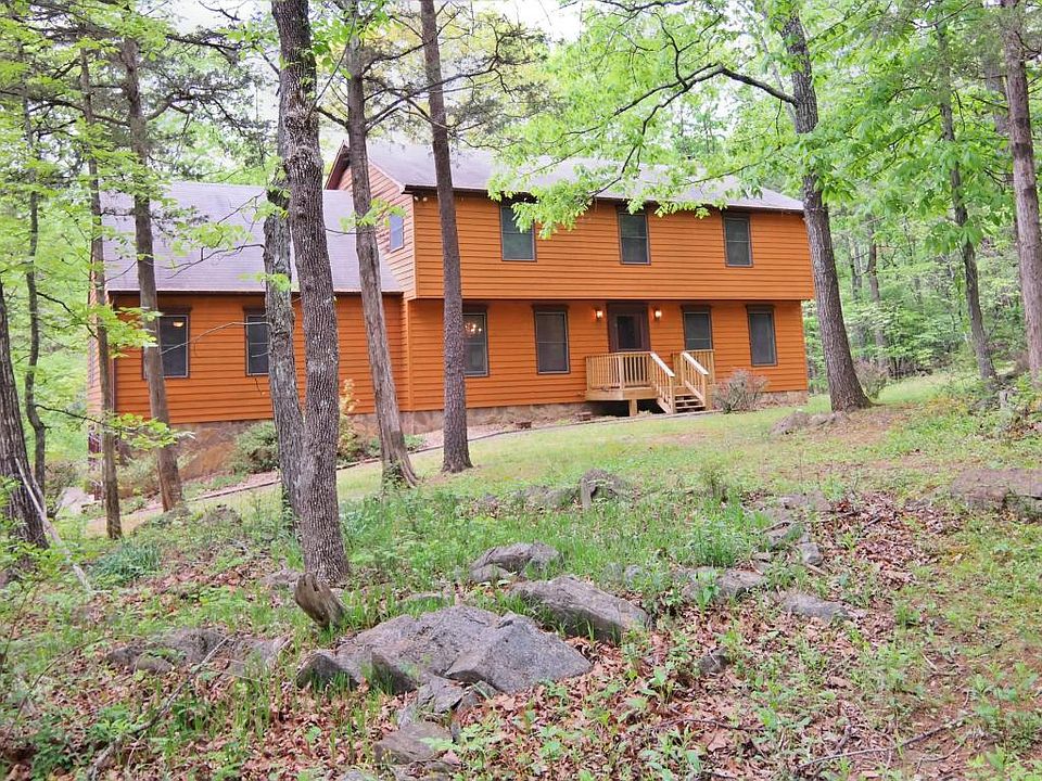 Cedar and stone 2-story w/4 BR, 2 1/2 Ba on 5+ acres-wooded setting w/stream -Spacious w/over3200 sq. ft. -Entry: Living & Dining Rooms, Family Room w/woodstove, Kitchen, Breakfast Area, Library. Upper: Master w/office or sitting area, 3 add. BR, Full bath. Full walkout basement. 2-Car garage. New front porch, deck, and balcony. Convenient yet private. Workshop with power. Near Greenfield park/recreation area. Please see supplement for details.