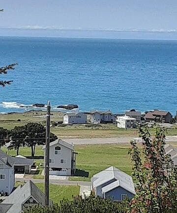This street-to-street lot has gorgeous panoramic views of the ocean, landing strip, and golf course. The upper half of the lot is gently sloped. Come build your dream home, then sit on your deck to watch the sunsets. Vacant lots on both sides of this parcel.