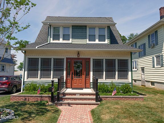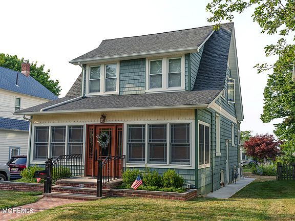 Gorgeous 5 bed/ 3 bath Craftsman- style home with located in highly sought after Atlantic Highlands, NJ. The original home was built in 1925 with hardwood floors and artistic wood molding throughout this warm and inviting dwelling. The front entrance has been lovingly redone with new brick and bluestone stairs and custom wrought iron railing with matching brick planters. The long asphalt driveway can hold at least 4 cars with off street parking in front. The property includes a detached 2 car garage and 8'x8' she shed. The yard is beautifully landscaped and has a large raised bed to plant your own vegetables. An 800 square foot addition was built in 2019. This included a new kitchen fully equipped with cherry wood cabinets with dekton countertops and full wall porcelain backsplash. wall porcelain backsplash. There is also a separate wine/beverage refrigerator to help with future celebrations on the 16'x16' back deck and new electric roll out awning. Part of the addition is a master bedroom with a walk-in closet and handmade stained glass window as well as a full bath and laundry area. Also, there is a small basement apartment including a full bath, living room and bedroom with separate entrance. Three cozy bedrooms and a large full bath greet at the top of the grand wooden stairway. One of the rooms currently used as a home office opens onto an expansive second floor deck with stunning views of New York City and Sandy Hook Bay. It's a perfect spot to see the magnificent sunsets and twinkling lights of New York City!