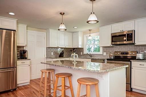 Nothing to do but move right in to this spacious and updated cape style home sited on 40,000 square feet of land with a perfectly flat back yard. The current owner has performed many tasteful updates including and not limited to a brand new kitchen with white cabinets, granite counter tops, and stainless steel appliances, new 2nd floor full bath with tile shower surround, 2nd floor laundry, hot water heater and energy efficient Buderus boiler (2014), new roof (2015), European style ductless air conditioning (2017), hardwood floors on the 1st and second level, a new septic tank and distribution box (2009), and more! This home offers a flexible floor plan for the extended family. Featuring 4 bedrooms and 2 full bathrooms in the main house and a 4 room in law apartment/au-pair suite with 1 bedroom, 1 full bath/laundry, kitchen, living room, and sun room. Don't miss this incredible value!