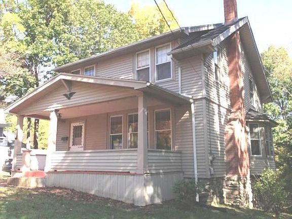 Located in a nice neighborhood full of beautiful mature trees, this Colonial-style house is complete with 6 total rooms with hardwood flooring throughout. The entry leads to the nice foyer, and the spacious living room boasts a brick fireplace and a wood panel wall. The formal dining room showcases a bay window. You'll love to cook in the open kitchen that features wood cabinetry, hard-surfaced counter tops and an above-sink window. The 2nd floor consists of three nicely sized bedrooms and a newly renovated full bathroom. There is a full walk-out basement with a new half-bathroom. Fantastic front porch and rear balcony for those who love the outdoors! The house also includes a detached, 1-car garage with a storage area on the lower level. A very nice and well built home overall.