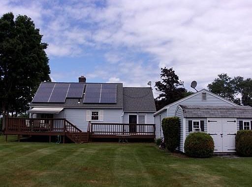 Seller has found her forever home and is VERY MOTIVATED !!! Wilbraham UNDER $200,000 AMAZING !!! The yard is amazing with a large deck with awning for your comfort. Beautiful garden areas. Whole yard has in-ground sprinkler system to make watering your yard easy. Oversized 1 car garage with extra storage PLUS a shed. Newer roof, replacement windows, central AC, Solar panels on back of house. Seller pays $72.29 a month and NO electric bill. Solar panels installed May 2016. Remodeled kitchen with granite counters, maple cabinets, stainless appliances. Kitchen opens to Dining room/Sunroom w/ cathedral ceilings, slider to the deck. Country Living room w/ Barn board walls, beamed ceiling, hardwood floors, picture window. 1st floor master bedroom with your own seating area with slider to deck. 2 closets, hardwood floors. 2nd bedroom upstairs with hardwood floors. Loft area for your own office area overlooking the Dining room. 2 full bathrooms. NEW Oil tank just put in.
