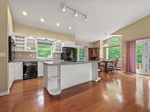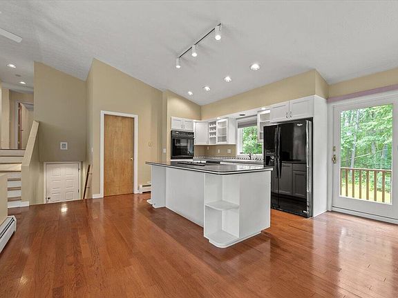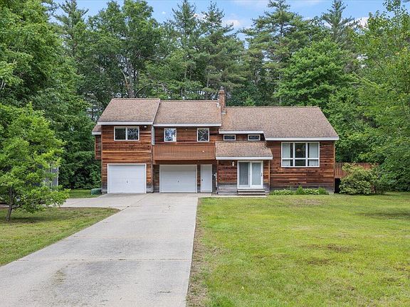 A BEAUTY INSIDE & OUT!  Once you see this house, you'll feel an instant connection. This well-maintained multi-level Contemporary home boasts a welcoming, sunlit entryway with a coat closet and a cozy wood stove that adds warmth without sacrificing space. Up the steps to the open concept living space (living/dining/kitchen) with its cathedral ceiling, floods the space with natural light. The efficient kitchen includes built-in appliances and a well-placed island that seamlessly connects to the dining and living areas. Step outside to the deck, where it makes the perfect spot for summer gatherings. The spacious laundry room adjacent to the kitchen offers ample space for a side-by-side washer/dryer and additional storage. The primary bedroom features a luxurious jetted tub and access to a charming Juliet balcony. Two additional bedrooms share a full bath with a double vanity.  Each room of this home offers lovely wooded views of the area.  The attached 2-car garage, equipped with a monitor heater, provides direct access to the living area. The heated daylight basement includes a fitness area with equipment, and there is potential to create additional living space. Situated within walking distance of the Shaker Woods Reserve Trail, this home offers easy access to major routes, making trips to the Biddeford/Saco area (20 minutes away) and Sanford (10 minutes away) a breeze.