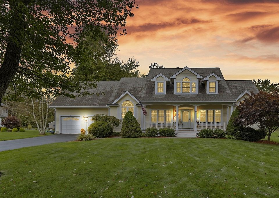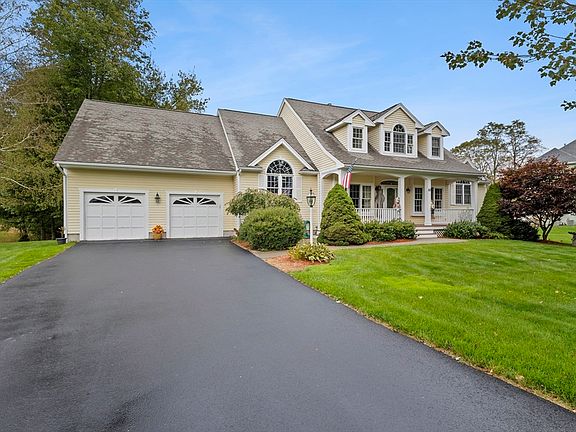 *FIRST FLOOR PRIMARY!* Are you sick of cookie cutter? This expansive custom cape w/ amazing curb appeal could be just what you've been waiting for! Unique in its layout/design, some of the many features of this home include: beautiful farmers' porch accenting a large & meticulously kept yard, 9' & cathedral ceilings throughout the main floor, vaulted kitchen w/ great sized pantry & large arched window, offset main stairway, 1st floor primary en suite w/ vaulted ceiling, 1st floor office & laundry room, living area accentuated by stately columns & 2 sets of french doors leading to deck overlooking beautiful backyard, sitting room w/ double-faced propane fireplace on the 2nd floor, bonus living room above the garage w/ 2nd stairway to the garage, skylit loft overlooking the kitchen, & front & back irrigation (9 zones). Town water, town sewer. Many rooms recently painted; upstairs central air replaced 4 yrs ago. Common areas & 1 guest bed have been virtually staged to show possibilities!