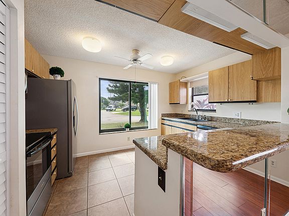 3/2.5 two-story house with a 2-car garage, fenced yard and large sun room! 2024 Shingle Roof, All 2nd story windows and front kitchen window are impact glass. Primary suite is on the first floor. Updated kitchen with Stainless Steel appliances. Lots of storage space and extra closets. Large trees in back outside the enclosed sun room. Community has a Pool, Tennis Court and Clubhouse. Low monthly HOA fee. Lakes of Tara has a convenient location, with walking paths around the lake to the pool and tennis court. No HOA Pet Restrictions except for them to be on a leash when walking around the community.