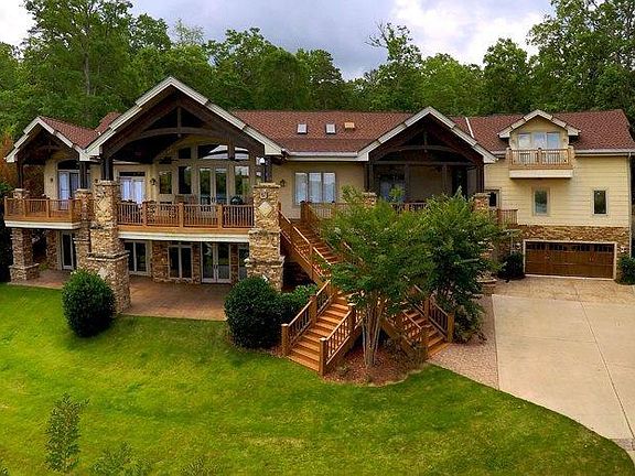 LAKE!Spectacular Deeded Dock, Prominently located lakefront on Lake Blue Ridge. 2 lots =.85 acres. House placed overlooking the entire lake. Close to Blue Ridge,GA..Huge home with arched wood ceilings and 3 stacked hand placed stonework fireplaces, hardwood Natural light, custom cabinets Granite Kitchen Countertop & bathroom counter top. Smart Home lighting and security system, private gym and theater room, Giant family room with built in Glass Aquarium, 2nd kitchen in the lower level if you need to care for someone in your family to have separate living area of one side of the lower level. over 7000 sq feet of home, upper 3 & lower 2 car garage.Bedroom over garage with stairs to storeroom.