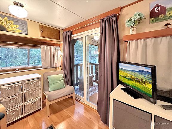 Located on a spacious corner lot just inside of Division 3, you will love this setup! There's a gorgeous covered deck for outdoor enjoyment year-round. Newer stove, flooring, updated bathroom and more! Well cared for, well lit and ready for you to start making memories at the Glen at Maple Falls! Wood shed and shed on site. Community amenities include Nooksack River access, parks, trails, pools, playgrounds, disc golf & year-round events. Gated access w/ 24/7 security. Comes fully furnished & is located just 30 minutes form Bellingham & 15 minutes from the base of Mt. Baker & Silver Lake. Limited to 120 days/year occupancy. No rentals.