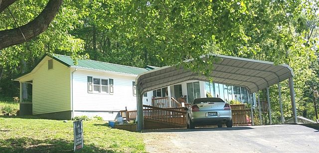 #3198 - 3 BD / 2 BA - Pineville, KY - This doublewide home has 3 bedrooms, 2 full bathrooms, living room, eat-in kitchen and a sunroom, city water, central electric heat and air; range and refrigerator stay with home; detached garage; storage building $69,900.