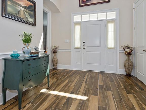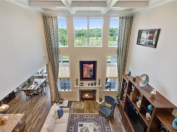 Spectacular Merrimack Model by Toll Brothers - only 8 mos old! Ready & waiting for you. This home backs to a protected Conservation area & from the moment you drive up, you'll fall in love! Open floor plan features; antique white kitchen w/ granite counters, top-of-the-line SS appliances, oversized center island, sink and expanded eating area w/ beautiful treed views beyond the custom brick paver patio. Dramatic 2-story Great Room w/ coffered ceiling, gas FP, loft views above w/ wrought iron spindled staircase. Dining Room w/ tray ceiling open to Great Room & Kitchen. Master BR w/ wide-plank wood floors, 2 step-in closets, luxury Master bath w/ oversized clear glass shower, floor-to-ceiling subway tile, upgraded vanity w/ double sinks. Too many features to list: study, wood tile & wood floors, decorative moldings, recessed lites, upgraded doors, stunning loft, alarm, centrl vac, direct access to attic, every upgrade imaginable & complete privacy in your yard.