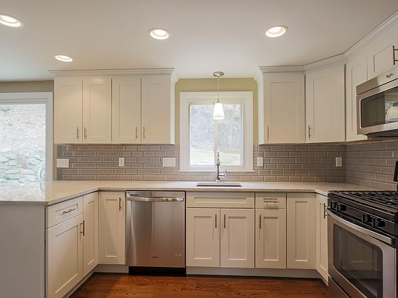 Better than New! Completely remodeled home in a perfect commuter location. Truly turn Key! 3 bedrooms 2 full baths, Beautiful kitchen with Marble counter tops, stainless steel Whirlpool appliances, hardwood floors throughout, first floor family room with plenty of space, generous eat in Kitchen that leads to a patio and backyard with plenty of space to entertain. Finished lower level Family room with a full bath and Laundry room. Brand New High efficiency gas boiler, 1 car attached garage. This is a must see!