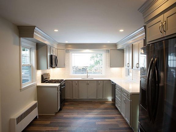 Don't miss this gorgeous turnkey home! This beautifully restored three bedroom, 1.5 bath colonial nestles in the quiet Mortgage Hill neighborhood on a double lot. Recent renovations preserved the original character of this charming home, while making significant modern updates. Recent improvements include exterior and interior painting, all new windows, and all new lighting throughout. New kitchen with quartz countertops, under cabinet lighting and black stainless-steel appliances. Front to back living room, beautiful sunroom, 3 large bedrooms, and 2 restored bathrooms. Downstairs boasts a large family room with heat for a potential mantown area or extra space for the kids! The location is a commuter's dream with the T-Commuter Rail one mile and I-95 two miles away. Finally, the property includes an attached two-car garage with new garage doors and a large yard with new landscaping.