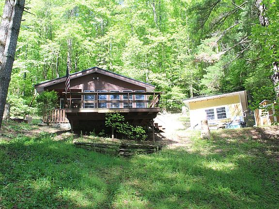 Sold as is. The main house is a 2 bedroom with 1 bathroom and the guest building has 1 bathroom in it. Would make a great starter house. Has a winter view with a nice deck to sit and listen to the birds. Has a screen in porch and a covered porch too. Kitchen has new flooring down. Has hardwood floor. Has a fireplace. Has a flat yard,