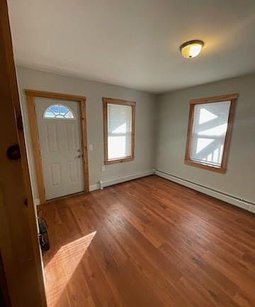Cozy home on second floor of three story townhouse. Wooden floor interior with modern appliances (fridge, stove, microwave). Newly installed roof. 2 bedroom apartment on 2nd floor. Updated appliances. Owner pays for gas heating, water, trash, lawncare and snow removal. Tenant plays for electric. Dumpster pick-up is bi-weekly. First months rent & security deposit required at closing. Background check and credit check. Please apply through Zillow in order for move in.