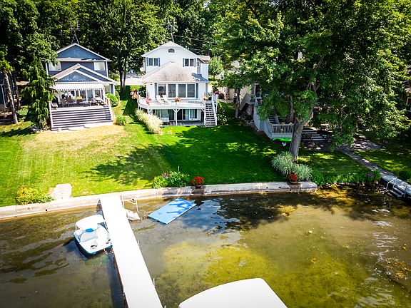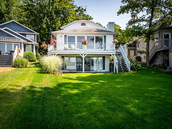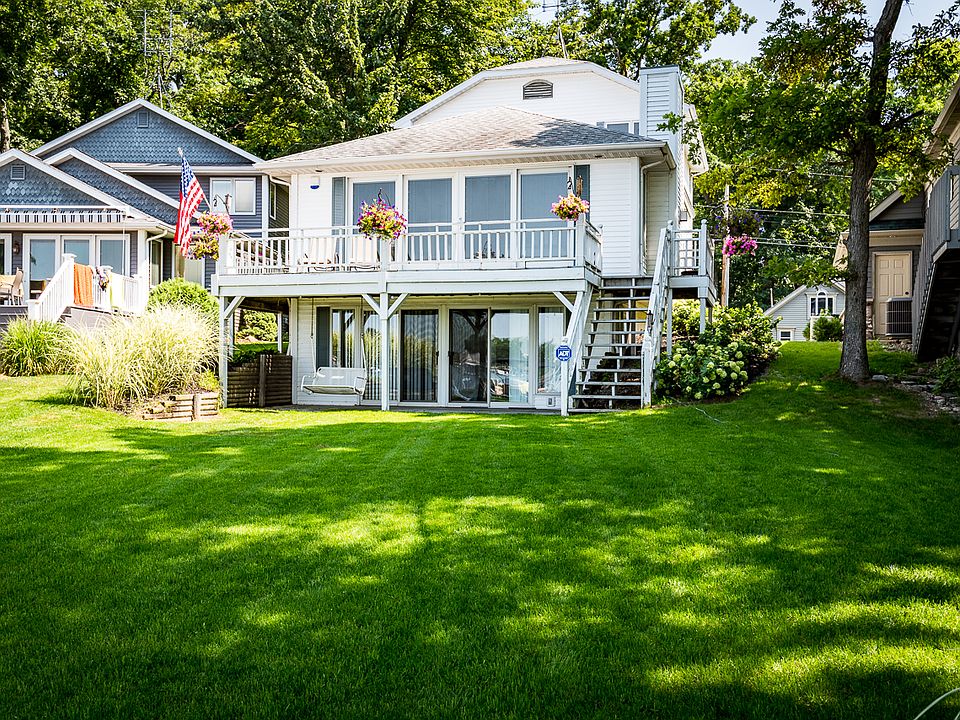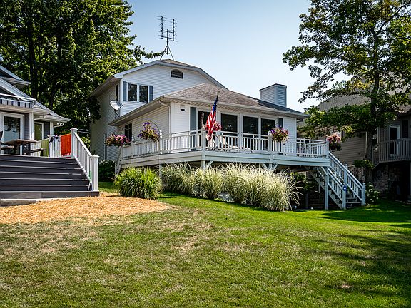 Beautiful Home on Gorgeous Clear Lake!! This is a 3 Level, 3 Bedroom, 3 1/2 Bath Waterfront Home that sits on the quiet, protected western shoreline of pristine Clear Lake. Enjoy breathtaking sunsets from the 2nd story deck of this home that comes with 3 land parcels! The main floor of the home consists of the kitchen, master bedroom and bathroom, foyer guest 1/2 bathroom, family room, as well as both dining and living room areas. The entire main floor has been completely remodeled and features wide-plank, hand-scraped, engineered hardwood flooring throughout. The kitchen has all new stainless steel appliances including a dual-fuel, dual oven, gas & electric range; custom cabinetry; granite countertops; a barn-style, copper sink; and a two-tiered island as well. The main floor master bedroom and bath have also been completely remodeled and feature a tiled dual-shower with sitting bench; new vanity; granite vanity counter top; new lighting; and all new high-end fixtures throughout. The large family room looks out over the lake and has a gas fireplace and stone hearth and walks out to the second story outside deck that provides amazing views & is perfect for entertaining! Although not installed yet, there is also an area adjacent to the kitchen that has been prepped with plumbing, electrical and lighting to accommodate a wet bar as well. Also on the main floor is the completely new foyer 1/2 bath. The upper level has carpeting throughout and consists of (2) large bedrooms and a full bath, as well as a loft/sitting area. The lower level of the home is a large, open area that walks out to the lower patio and then to the lakeside lawn, making for easy access to and from the lake. This level also has carpeting throughout & can be used for everything from an additional family room to extra bedrooms, a great room, or even an office. Currently there is an extra kitchen as well as a full bathroom. Also on this level is the large laundry room and the utility room which houses the sump pump, furnace and a new water softener. Across the street is a 1,200 sq. ft. garage that sits on a double back lot! This piece of the property is very private and is as beautiful as the lake side! It has all been sodded and backs up to forested conservancy land so there are no concerns for future development, while making it perfect for bonfires, games of volleyball or cornhole, or hiking on the adjacent nature trails. There is a new well with high-output pump.