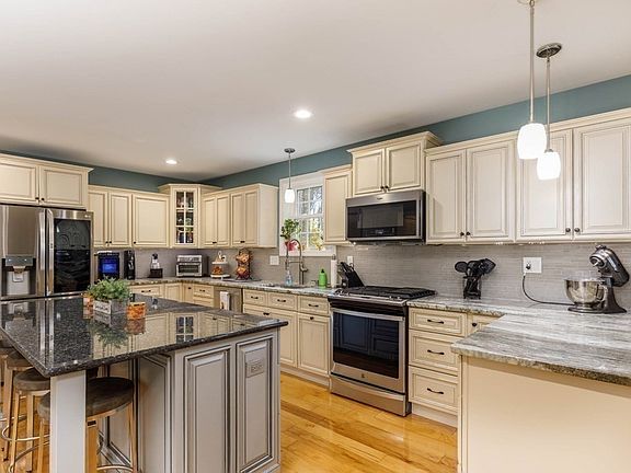 Huge Price Reduction. Exceptional 4-bedroom, 3-bathroom colonial is a perfect blend of luxury and convenience. Featuring 30 year architectural shingles, 1year old high-end appliances, hardwood floors throughout, home boasts seller-owned solar panels, fully controllable smart home features via cell phone, and a whole-house generator with automatic transfer switch (ATS). The chef's kitchen is a dream with granite counters, a large quartz center island, and a 5-burner gas stove. Enjoy the outdoors with a heated, saltwater inground pool new 2019, pool house, and beautifully landscaped grounds, including a 3-tier deck with a power awning. The spacious master suite offers a walk-in closet and an elegant bath. Additional highlights include a farmers porch with a granite walkway, gorgeous finished basement. Water filtration system, 300 amp electric and a 2-car heated garage, Elec heat pump.. Don’t miss this extraordinary home.