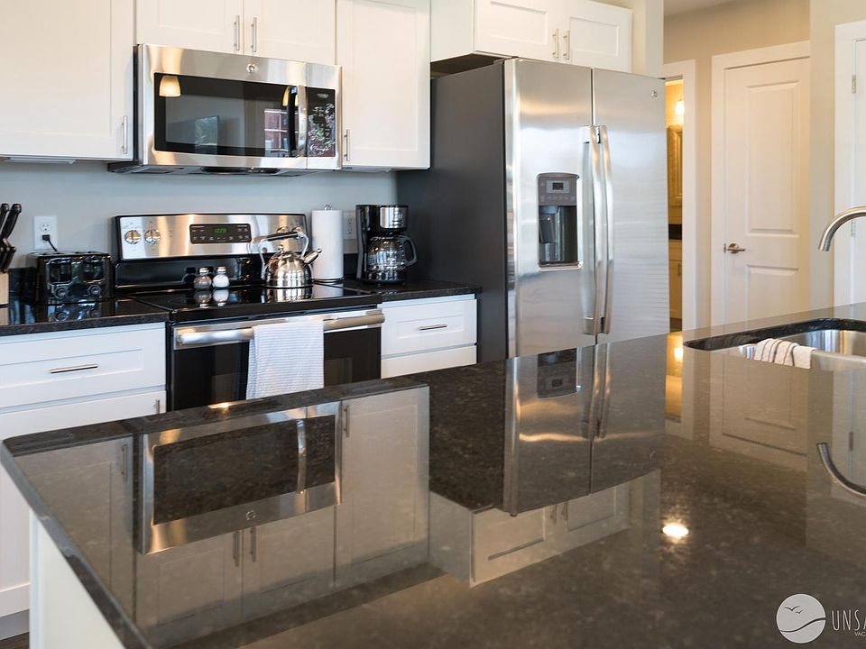 River Watch" is a tastefully decorated, first-floor condo right along the Manistee River. Watch the bridge go up and the freighters pass by, all from your private balcony. Open the back door and let the breeze in while you relax, cook, play games, or watch TV. The master bedroom features a king-size bed and an en suite bathroom. The guest bedroom has a twin XL over queen bunk bed. Additionally, there is a guest bathroom with a washer and dryer, a fully equipped kitchen, and a living room with a queen-size sofa sleeper, and cable TV. Everything in this condo is brand new including the furniture, bedding, and appliances. Park your car in the one-stall garage and walk downtown to the shops and restaurants, or take a stroll down the river and walk to the beach. Come stay at "River Watch" and enjoy all that Manistee has to offer! Utilities are included in rent. No pets and no smoking. Lease duration through 5/1/23.