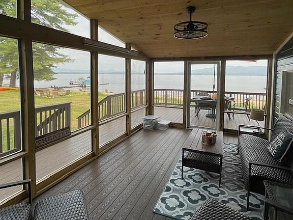 Discover the perfect blend of charm and convenience in this cozy newly furnished 2-bedroom, 1 bath cottage located right on the sandy shores of Ossipee’s main Lake. Weetamoe Shores is arguably one of the best spots on the lake! This gem features two deeded boat slips, making it a boater's paradise. Enjoy direct access to the sugar sand beach or take in the stunning lake views from the spacious NEW deck and NEW large screened porch, ideal for morning coffee or evening relaxation. Bonus outdoor shower! The screened-in porch is equipped with a retractable movie screen and projector, transforming your evenings into an outdoor theater experience. Whether you're entertaining or unwinding around the fire pit, this space is designed for comfort, enjoyment and making memories. Located directly behind a golf course and close to shopping and skiing the location is unmatched! Wake up to direct sunrise views in this completely updated retreat. Don't miss the opportunity to own a piece of lakeside paradise!