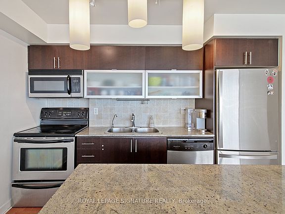 Rarely Offered 2 Bed, 2 Bath Unit At Zip Condos In Liberty Village! One Of Only Three Units On The North Side Of The Building, Offering Stunning, Unobstructed North-Facing City Views. This Spacious Suite Features 820 Sq. Ft. Of Interior Living Space Plus A Generous 240 Sq. Ft. Balcony, Perfect For Outdoor Dining Or Relaxing. The Open-Concept Layout Is Enhanced By Floor-To-Ceiling Windows, Flooding The Space With Natural Light Throughout. Highlights Include A Chefs Kitchen With A Large Island, Granite Countertops, And Glass Shower Doors. Thoughtfully Designed With No Wasted Space. Includes 1 Parking Spot And 1 Locker. Exceptional Location Just Steps To Trendy Shops, Restaurants, Cafes, Parks, And Public Transit (Exhibition GO & TTC). Building Permits Short-Term Rentals An Excellent Opportunity For Investors Or End Users!