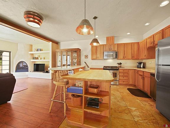 The best of both, in town convenience and privacy in this large, immaculately maintained townhome. This home sits in a complex with 3 other units, offers premium construction and quality, beautiful adobe style architecture with park like setting within walking distance to downtown. Downstairs of this home offers an open and bright space with the kitchen, dining, and living room combined for perfect entertainment space. Kitchen is complete with clean and sleek Corian counter tops, stainless steel appliances, an island work space, and nicely appointed wood cabinets. Living room features a sliding door that opens to the private back yard area and a corner kiva fireplace. Downstairs you'll also find a bathroom with shower, a large laundry room and pantry, and the two-car garage. Travertine 18" tile and wood laminate flooring finish off the downstairs for easy maintenance and cleaning. Throughout the home are custom wood doors and trim, rounded drywall corners, warm paint colors, high ceilings, and lots of windows for extra light. Upstairs are three very spacious bedrooms, each with plenty of closet space and the same fine finishes throughout. The master has a view of the private hill behind, a full bathroom with two sinks, linen closet nook, and room for a sitting area. Down the hall are the two other bedrooms with a shared bathroom. Bathroom features two sinks, Corian counters, a linen nook. The third bedroom is the largest of the three and could easily make for a game room, media room, play room, or another master. There is room for an in-home office or sitting area upstairs as well. The entire exterior has been refinished and has a fresh coat of stucco approved paint. Loads of square footage for the money, a beautiful location, an immaculate home, and abundant appeal inside and out.
