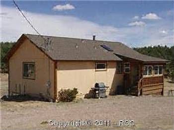 Bright, cheery stucco rancher with log/wood accents provides sweeping views including Pikes Peak & Dog's Head. Great cross-fenced horse property has 2-story barn w/tack room & 2 stalls (5GPM household well). Interior features the warm look of ceramic tile floors/counter tops/shower surrounds combined with pine trim & T&G walls/ceiling. Both baths are Jack n Jill style; master boasts a jetted tub. Cozy woodstove & air-lock entry keeps heat bills low in winter. South-facing windows allow sun to warm interior tile/wood for a