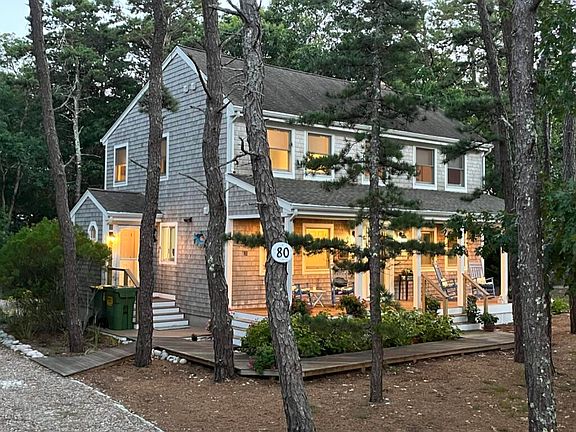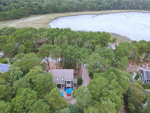 Outstanding location in quaint Wellfleet neighborhood, this lovely home is ready for your immediate enjoyment. Relax on the charming farmer's porch and take in the serene views of Drummer's Cove. Beautiful kitchen with new appliances is open to the dining area with access to an expansive wire-railed deck. The living room features a beadboard cathedral ceiling and fireplace. First floor full bath and bedroom, plus two second floor en suite bedrooms--one with a delightful balcony overlooking the private back yard. The partially finished lower level adds 280 sq ft of living space. Additional amenities include mud room, over sized outdoor shower, generator, new central air, cedar closet, central vac, new electronic skylights and a 10 x 12 pine shed for storage. Access to Drummer's Cove right across the street, and a short walk to Pleasant Point Landing and beaches. Home is being offered mostly furnished.