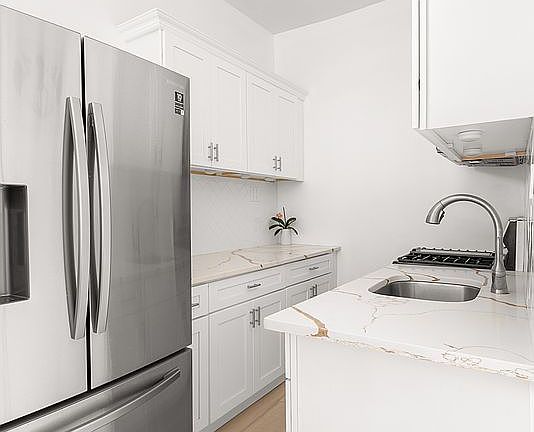 This oversized 2-bedroom co-op at 80 Winthrop Street is a rare find—no shared walls, no hallway noise, just peace, privacy, and nearly 10-foot ceilings. Tucked behind a private entry hall, Unit L1 feels more like a house than an apartment. The renovated eat-in kitchen is a chef’s dream, featuring natural stone countertops, high-end appliances, soft-close cabinetry, and an oversized fridge. With four generous closets and serene views, this home delivers both style and function in equal measure.