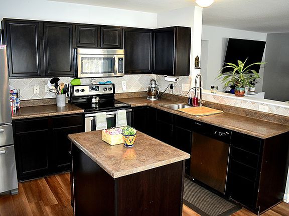 - Kitchen Features: Vinyl Floor, Eat-In, Wood Cabinets, Island