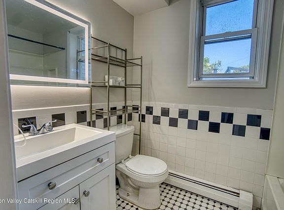 Newly renovated roomy 3-bedroom, 1 bath apartment in the heart of Kingston's hip Ponckhockie neighborhood, situated on a quiet street with all rooms on one floor and featuring a charming wrap-around porch. The open floor-plan includes a freshly updated kitchen with sleek modern appliances, a spacious living and dining area, and the convenience of on-site laundry facilities. The generous bedrooms offer abundant closet space, while off-street parking provides added convenience. Just minutes from local hotspots like Sorry Charlie's, Hutton Brickyards, Sojourner Truth State Park, and the Empire State Rail Trail, this apartment offers the ideal blend of peaceful living and vibrant community. 12 month+ Lease. 1 Small pet allowed with owner approval. Off St Parking