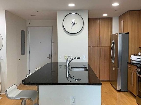 Trio is modern & upscale community in Palisades Park built in with custom finishes and features the two nine story high rise buildings. One of the largest one bedroom for sale. The unit featuring open kitchen with new stainless steel appliances & granite counter tops, floor to ceiling windows(9ft), new living room PTAC unit, new washer & dryer, modern full bath with marble finish and one parking space included. Close to shopping, NY BUS, school and major highways.