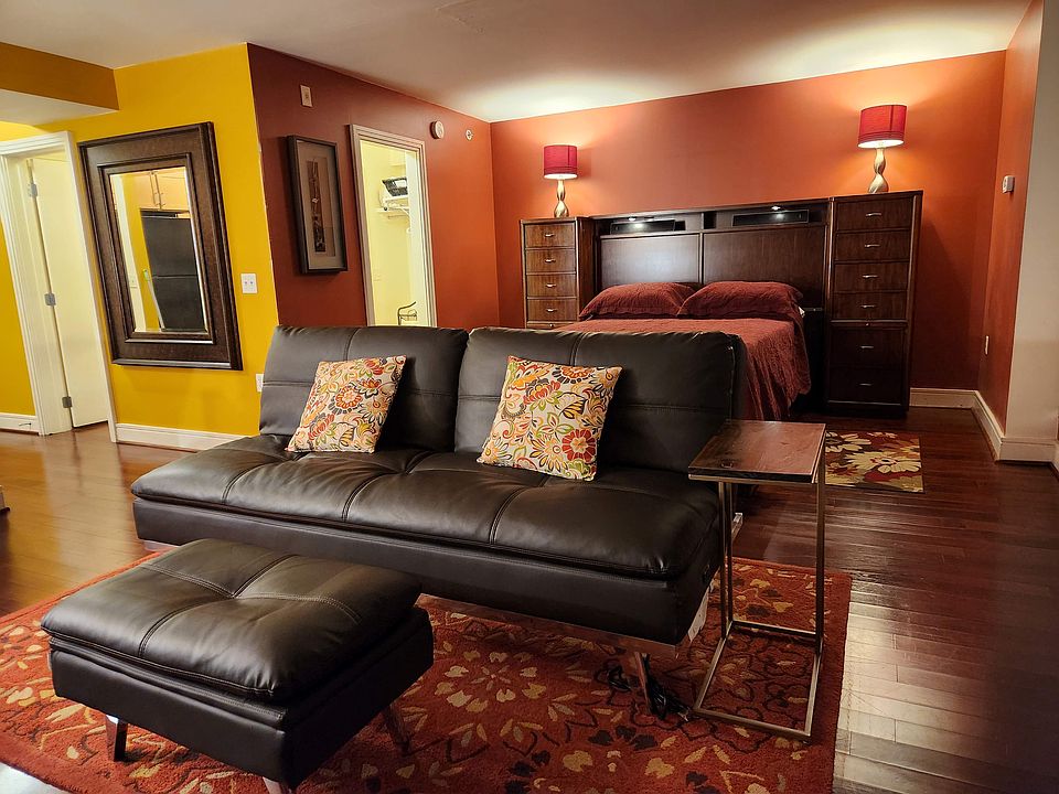 Unit Details Contemporary kitchen, refrigerator/freezer, oven, microwave and dishwasher Ceramic tile - kitchen and bathroom, cherry hardwood (living room, bedroom, closet, hallway) Large walk-in closet, Queen size bed with storage underneath and chest on both sides, large wall mounted flat screen television with Sony surround sound stereo, leather sofa/futon and ottoman. Also included is a personal covered parking space at north entrance and additional storage unit in basement. Amenities galore include concierge, gym, pool, party room and business center. Convenient to SW Waterfront Metro, Safeway, Nationals Park, dining options and blocks from The Wharf development. 5 minute ride to National Airport. All utilities are included, except internet and cable.