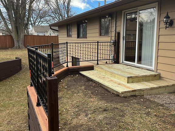 WELCOME to this 4 BR Rambler with 3 BRs on the 1st floor and a 4th BR w/ look-out windows in the lower level. Narrow plank, tongue-in-groove Hardwood floors in the 3 BRs on 1st. NEW DECK/STAIRS & RAIL OFF DINETTE were INSTALLED THIS WEEK! Your Fam Rm has a wood-burning Fireplace; an ideal play space for family/friends. New flooring in the Kitchen/Dining area & Living Room. Sliding glass door from Dinette area to a cedar fenced, SPACIOUS ( .34 acres) backyard! Great Play space... Room for your Garden & Games, etc...with a handsome cedar privacy Fence. Your dbl att Garage is right off the Kitchen for easy groceries and everyday living PLUS you have a large barn-styled Shed in the backyard for storage needs, your studio, or however you might chose. Plenty of lot space for your TRIPLE GARAGE PLUS TURN-AROUND. Ceiling fans in 3 Bedrooms & Dinette area. Glass block window in main Bath. Close to HyVee, schools, parks, shops, restaurants, and bus. Brick and aluminum exterior.