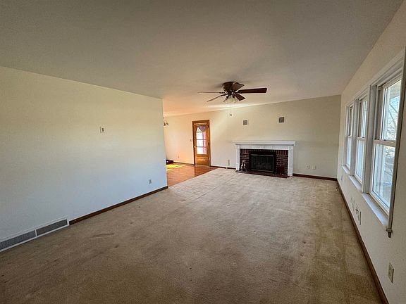 This brick ranch style 3 bedroom, 2 bathroom home features formal dining area, living room with fireplace, breezeway, double attached garage and located close to hospital and medical facilities.