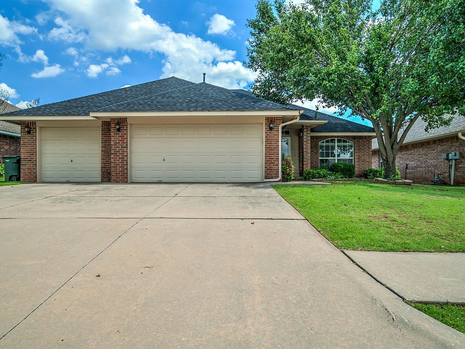 800 Adam Court is nestled in a quiet cul-de-sac and offers a flexible, split floorplan with a study at front of house; Almost 2000 sq feet of living space with guest bedrooms sharing a bathroom on one side of home and master suite on other side of home; Walls and ceilings been freshly painted and updated with neutral gray walls, white ceilings complimented by white cabinets, doors & trim; ceramic tile in kitchen and baths with new hard surface flooring throughout main areas and new carpet in all 3 bedrooms; 3 car garage with openers; large laundry, pantry and lots of storage; refrigerator/washer/dryer can stay with home in as-is condition; covered patio on back of home with large, fenced yard; walking distance to shopping and restaurants! GREAT LOCATION to shopping/schools etc; Edmond Schools; HOA offers a small park within walking distance of home - hurry because this one will go quickly!! 800 Adam Court will be professionally managed by Top Sail Management; Security deposit to equal one month of rent; Pet will be considered with $400 pet fee; 675 credit score minimum required to qualify plus verified income at least 3 times rent amount HOA dues included
