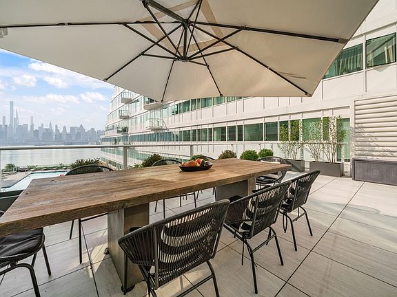 Rarely available for rent, an elevated living experience awaits with your private outdoor terrace, welcome to Residence #511 at The Avora. Located within an Architectural Masterpiece and celebrated waterfront building, residence #511 is the crown jewel of homes with private outdoor space staring directly across to unimaginable views of Manhattan. Incredibly unique before you even enter the home off the elevator, enjoy your own private vestibule only for this unit! That is right, you do not share hallway space with any other home, and rather you have a private entrance before even entering the amazing foyer inside the home. Sticking with unique and not otherwise seen, the terrace spans over 400 square feet as noted! Perfect for dining parties as the sunset reflects delicately against the Manhattan skyline, or to enjoy the serene sunrise with a coffee in hand. The terrace is located right off of the main living space, which has an open concept laying out from the chef's kitchen, highlighted by an oversized island with built in seating, straight through to the dining room and living room. There is currently a built-out office space perfect for the work from home environment, or useful in creating additional space as needed. The primary bedroom is laid out to perfection, with a walk-in closet only outdone by the double-doored walk-in ensuite with dual vanity, walk-in shower, and floating soaking tub with water pouring from the ceiling. The second bedroom is exceedingly versatile, currently used as an amazing baby room for growing families but large enough to have a full second bedroom set no problem. The finishes throughout the home include wide plank wood floors, quartz countertops, high-end appliance package, and porcelain tile. No detail has been overlooked, no detail too small. Located in an ultra-luxury waterfront building that separates itself from the rest, enjoy 30,000sqft of deliberately laid out amenity spaces meant to enrich your lifestyle to the fullest. The inclusion of a 24-hour concierge, state of the art fitness center, business center, sport simulation room, grand salon, private screening/media room, business center, resident lounges, interior lounge with private dining and bar provides just a taste of what to expect. Meanwhile the outdoor sun deck and barbeque patio of grills and fireplaces surround the in-ground pool with views of Manhattan from every angle ultimately making your new home feel more like a resort than a condominium building only minutes from Manhattan. The true amenity which no other building can provide would be the ease of a commute, with the Avora being only a minute walk from the front door to the Weehawken Ferry station. Advanced notice and appointment required to view.