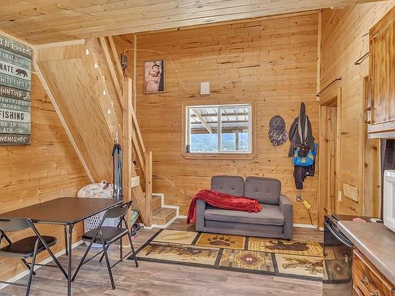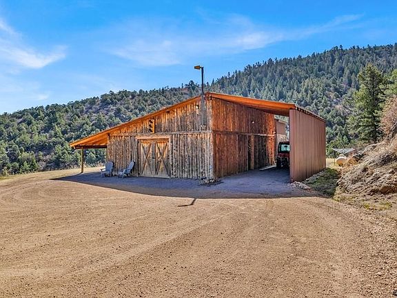 Peace & Tranquility! This rustic cabin is situated on 55 acres of land that corners BLM land, offering stunning views of the surrounding area. The property includes a large barn, a great well, electric, and septic. Internet available! There is also a large 3 car carport that could easily be enclosed as a garage. There are two possible building sites with fabulous views. Live in the cabin while you build your dream home. This is the perfect spot for anyone looking for a peaceful retreat in the great outdoors. It is located at the end of the road, providing additional privacy and seclusion. Hunters GMU #58.