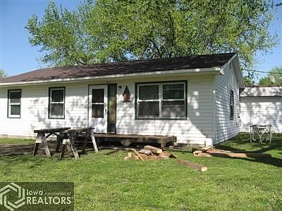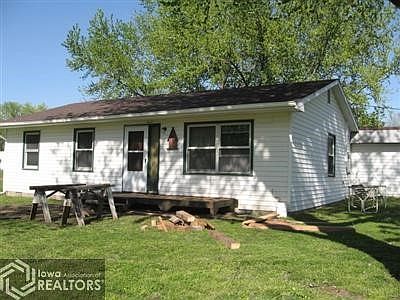 Property includes 1 story home,with detached garage, 6 city blocks. 2 apple trees, other mature trees. large metal machine shed, roof fell in seller is in the process of taking care of. Garden area. Home is located on south side of main road through Riverton. Electric baseboard heat. Home has been well maintained. All appliances stay. Much larger inside than what it appears from outside.