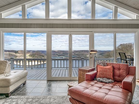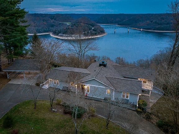 Unrivaled lake view and location can be yours from this stunning Center Hill Lake home. This rare find features upper and lower living rooms, each with stone fireplace, 3 bedrooms on main level with ensuite bathrooms, gorgeous custom kitchen. Master bedroom features private lake view screened porch. Large upper and lower decks, expansive garage for boat storage, two-car carport/pavillion. Serene, park-like setting on 2.61 acres. Only minutes to I-40, Hurricane Marina & Floating Mill Park.