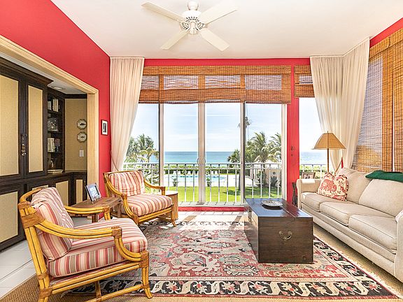 Capitalizing on panoramic views of the tranquil turquoise sea and pool with spa, this beautiful 2BR/2BA oceanfront condominium enjoys the convenience of being steps from the private beach, as well as quick bike ride to the Beach Club and all club amenities. This 2,250+/- square feet residence is perfect for someone who is ready to create their dream escape; offering a spacious living area with wet bar and adjoining enclosed seaside lanai with built-ins, as well as a lovely master bedroom and guest suite. A generous kitchen and utility area flow to a comfortable dining area, while the residence is complete with additional storage and one oversized underground parking space.