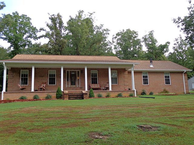 THIS PROPERTY HAS PRIVACY AND STILL ONLY MINUTES TO COURT SQUARE. THIS SPACIOUS 3 BEDROOM BRICK HOME WITH LARGE FRONT PORCH HAS AN OPEN FLOOR PLAN. THE GREAT ROOM HAS OAK HARDWOOD FLOORS AND A GAS FIREPLACE, THE KITCHEN OFFERS A HUGE PANTRY AND SILESTONE COUNTERTOPS, THE STOVE HAS A GAS STOVETOP WITH ELECTRIC OVEN. ENJOY MORNINGS FROM THE BREAKFAST NOOK LOOKING OUT BAY WINDOWS ONTO COVERED CONCRETE PATIO.. THE MASTER BATH HAS OAK VANITY, TILE FLOORS, A 4FT. STEP-IN SHOWER AND A JACUZZI TUB. THE MASTER BEDROOM HAS HIS/HER WALK-IN CLOSETS. PROPERTY HAS 63/4 ACRES WITH DETACHED GARAGE