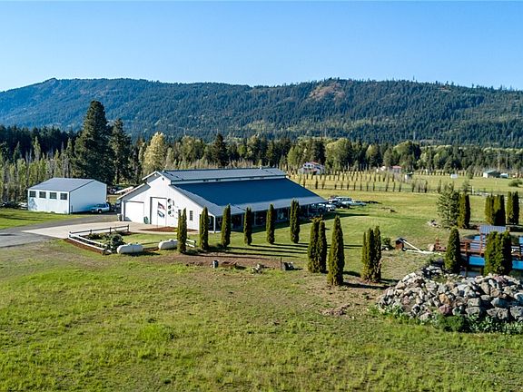 Unique carriage style home w/2 living areas, shop space & outbuildings on 5.72 acres of potential horse property. Main home is 2 bed, 1 bath w/soaring ceilings, open concept kitchen/dining/living room w/tile flooring. Secondary living space is 2 bed, 1 bath, kitchen/dining area. Overall living areas could be classified as one due to access, but have separate propane tanks, heat systems & meter boxes. 30 x 40 equipment bldg/pole barn & 40 x 50 horse barn. Coy pond w/footbridge, KRD irrigation!