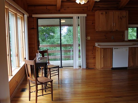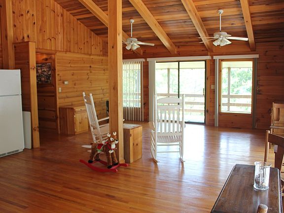 Cabin sitting on top of a hill! Secluded but can cut down a few trees and have a awesome view. Lots of yard space. End of the road privacy! Large open kitchen/dining/living room. Tongue n Groove on the cathedral ceilings. Large open kitchen with beautiful cabinets. Lots of windows and sliding doors for natural light throughout the entire house. Built in shelves and cabinets throughout the house. The builder was a craftsman. Master bedroom has two sliding doors with bathroom. Another bedroom with sliding door and bath on the main. Upstairs is a kids playroom/hideout! In the basement you have a one car garage, laundry room, bathroom, and Large rec room/Multipurpose with lots of built in cabinets with a super closet. Storage room with shelves. Wrap around porch around the entire house. Owner owns the lot beside the house and is welling to sell it also.