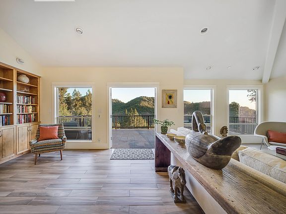 Retreat to Fairfax and enjoy fresh air, hiking/biking trails, and miles of open space, right outside your front door from this contemporary 5-bedroom, 5.5-bathroom, 5,000+-square-foot residence on 1.56 acres overlooking scenic Cascade Canyon. The scale and floor plan make it ideal for families and professionals working from home. Includes: cathedral ceilings, great room/dining room, chef's kitchen and family room with fireplace and decks for entertaining. Master suite with wraparound deck with Jacuzzi, large walk-in closet, fireplace, palatial spa bathroom. The fifth bedroom includes a kitchenette and separate entrance, perfect as an in-law suite or office. Wine room, multiple laundry areas, radiant heat and partial central air provide year-round comfort. 2 car garage, ample parking plus a separate structure for an office or yoga room. Fairytale grounds, Japanese-style gardens surrounded by acres of open space and lakes yet only five minutes to downtown Fairfax.