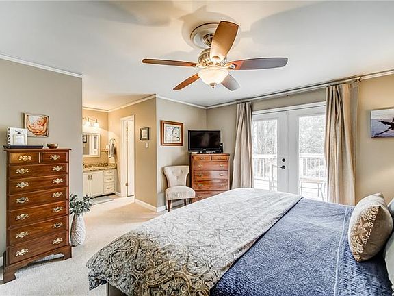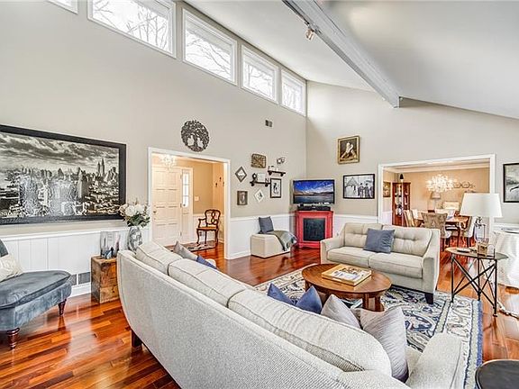 Welcome Home to this Rare Ranch over Fully Finished Basement in the highly sought after Brookfield Country Club. This gorgeous home sits on a Large, Fenced, Secluded Lot surrounded by Woods and a Creek. Step through the front door into the bright Foyer and Great Room complete with Skylights, Vaulted Ceilings, and newer French Doors that lead to an Expansive Two Tier Wraparound Deck. Brazilian Cherry Hardwood Floors run throughout the main living space and into the Kitchen that boasts a Large Island, Granite Countertops, a newer Gas Range, & ample Cabinet space. The Owner's Suite features His and Her vanities, a Walk In Closet, and French Doors leading out to the Back Deck. Two Large, Secondary Bedrooms are featured on the main level with a renovated Jack and Jill Bath. Stairs lead down to an Oversized Family Room, complete with a Second Wood Burning Fireplace. Two Private Bedrooms, each with their own Full Bath, are tucked away on each side of the Family Room. Storage is a breeze with multiple unfinished spaces perfect for stowing all your extra and seasonal items. Listen to your favorite tunes on your Indoor/Outdoor Speaker System while lounging by the Fire Pit or Grilling your favorite meal. This home has it all, including an Optional HOA and Country Club Membership Options for Pool, Tennis, Golf, and more.